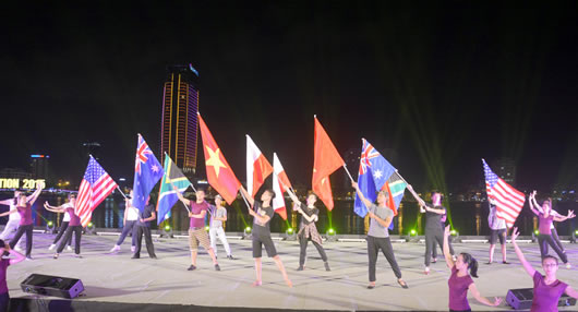 Như thường lệ, khi những màn pháo hoa rực rỡ tỏa sáng trên bầu trời, thì hiệu ứng âm nhạc cũng tác động sâu sắc góp phần đưa khán giả đắm chìm vào khung cảnh của đôi bờ Hàn giang huyền diệu. Vì là cuộc thi trình diễn pháo hoa quốc tế, quy tụ các đội pháo hoa đến từ 5 nước đại diện cho 5 châu lục nên những ca khúc, hình ảnh văn hóa đặc trưng của mỗi đất nước cũng được khắc họa thông qua những tiết mục hát múa đặc sắc, giúp khán giả phần nào hiểu về đất nước đó trước khi thưởng thức câu chuyện mà họ kể bằng pháo hoa. Chẳng hạn trước phần thi của đội Nam Phi thì điệu nhảy truyền thống Kwaito trong trang phục, âm nhạc đặc trưng văn hóa Nam Phi sẽ được thể hiện. Tương tự trước khi đội Ba Lan trình diễn “Đam mê của chúng tôi- cảm xúc của các bạn” thì bản Valse của thiên tài người Ba Lan là Chopin sẽ cất lên, 14 diễn viên múa xuất hiện từng đôi trong điệu Valse lãng mạn và tình tứ sẽ dìu khán giả du dương về thăm đất nước Ba Lan xinh đẹp. Có thể nói, chính phần âm nhạc và những vũ điệu đã mang thông điệp hòa hợp, gắn kết, dang rộng vòng tay đón chào du khách, đón chào những người bạn phương xa về với Đà Nẵng để cùng chìm đắm trong “đại tiệc” ánh sáng hân hoan.