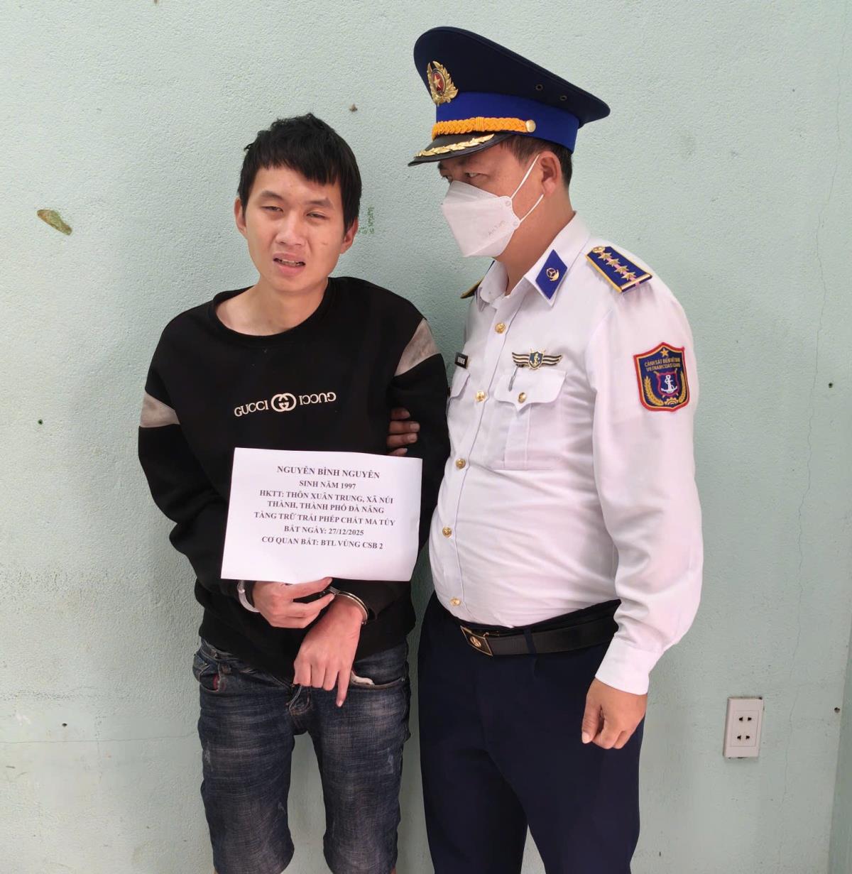Còn tại xã Núi Thành, sau thời gian theo dõi, lúc 19 giờ 30 ngày 27-12, tại khu vực cây xăng cảng cá Tam Quang (xã Núi Thành, Đà Nẵng), tổ công tác của Bộ Tư lệnh (BTL) Vùng Cảnh sát biển 2 chủ trì, phối hợp với Công an xã Núi Thành bắt quả tang đối tượng Nguyễn Bình Nguyên (1997, trú xã Núi Thành) có hành vi tàng trữ trái phép chất ma túy. Tang vật thu giữ 1 túi zip chứa ma túy dạng đá. Hiện Tổ công tác của BTL Vùng Cảnh sát biển 2 đang tiếp tục phối hợp với Công an xã Núi Thành tiến hành các hoạt động điều tra theo quy định của pháp luật.
