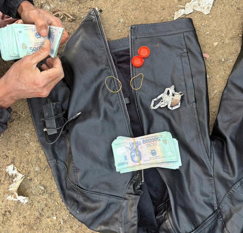 Tiến hành kiểm tra, lực lượng Công an phát hiện trong túi quần của Nguyễn Quang Hòa có 3,9 triệu đồng. Kiểm tra bao ni lông trên xe Honda Dream, phát hiện bên trong áo da màu đen có 130,5 triệu đồng tiền mặt và một hộp nhựa màu đỏ chứa 2 khâu kim loại màu vàng. Qua đấu tranh nhanh, anh Nguyễn Ngọc H. khai nhận toàn bộ số tài sản trên là của Nguyễn Quang Hòa nhờ mang về nhà giúp. Ngay sau đó, đối tượng cùng tang vật được đưa về trụ sở để tiếp tục làm rõ.