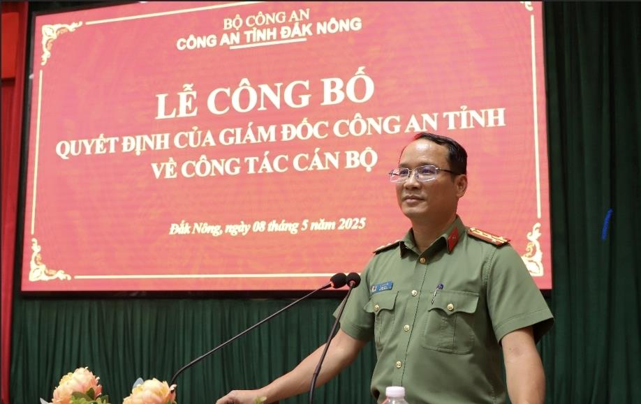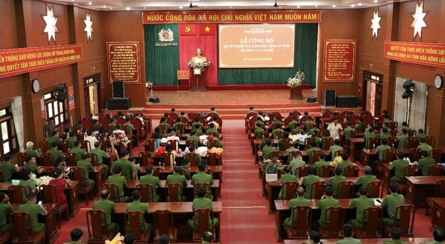 Chiều 8/5, Công an tỉnh Đắk Nông tổ chức lễ công bố quyết định của Giám đốc Công an tỉnh về công tác cán bộ. Đại tá Hồ Song Ân, Ủy viên Ban Thường vụ Tỉnh ủy, Bí thư Đảng ủy, Giám đốc Công an tỉnh chủ trì buổi lễ. Tham dự có các đồng chí Phó giám đốc Công an tỉnh; lãnh đạo, chỉ huy và cán bộ, chiến sĩ các đơn vị.