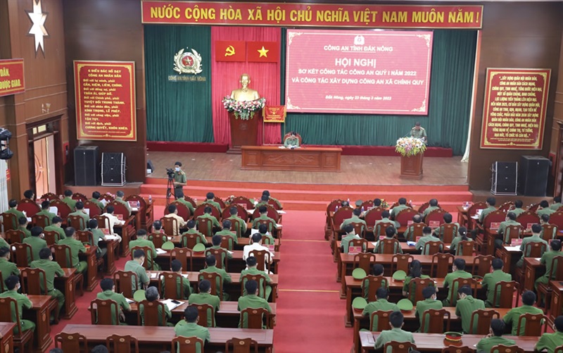Đối với công tác xây dựng Công an xã chính quy, trong năm 2021 và quý I năm 2022, Công an Đắk Nông đã tổ chức lễ tuyên thệ thành lập Công an xã chính quy tại 100% xã trên địa bàn toàn tỉnh; bố trí mỗi xã từ 6 đồng chí trở lên (cao hơn chỉ tiêu Bộ giao), đồng thời tổ chức 5 lớp tập huấn bồi dưỡng nghiệp vụ, lý luận chính trị; thành lập 60/60 chi bộ Công an xã, các đồng chí Trưởng Công an xã đều tham gia Ban Chấp hành, Ban Thường vụ các xã; Công tác hậu cần, trang bị cho lực lượng Công an xã từng bước được đảm bảo ... Mặc dù còn gặp nhiều khó khăn về cơ sở vật chất, phương tiện, địa bàn công tác, nhưng lực lượng Công an chính quy trên địa bàn tỉnh Đắk Nông đã và đang phát huy vai trò nòng cốt trong công tác đảm bảo an ninh, trật tự, phòng chống tội phạm và phòng, chống dịch Covid-19, góp phần bảo đảm ANTT ở cơ sở, bảo vệ cuộc sống bình yên và hạnh phúc của Nhân dân, được các cấp lãnh đạo và quần chúng nhân dân ghi nhận, đánh giá cao.
