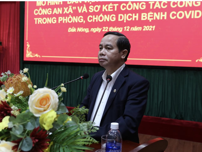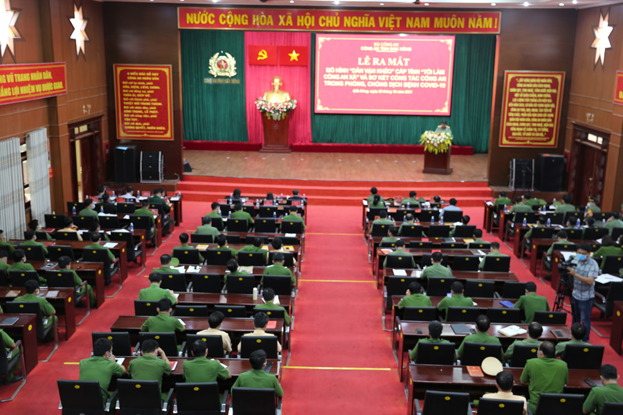 Chiều ngày 22/12, Công an tỉnh Đắk Nông đã tổ chức lễ ra mắt Mô hình “Dân vận khéo” cấp tỉnh “Tôi làm công an xã” và sơ kết công tác phòng, chống dịch Covid – 19. Tham dự hội nghị có các đồng chí Điểu Kré, Ủy viên Trung ương Đảng, Phó Bí thư thường trực Tỉnh ủy; Hà Thị Hạnh, Uỷ viên Ban Thường vụ Tỉnh ủy, Trưởng Ban Dân vận Tỉnh ủy; Tôn Thị Ngọc Hạnh, Tỉnh ủy viên, Phó Chủ tịch UBND tỉnh cùng các đồng chí Lãnh đạo Công an tỉnh, lãnh đạo một số ban, ngành, đoàn thể của tỉnh; lãnh đạo, chỉ huy, CBCS Công an các đơn vị, địa phương. Đại tá Bùi Quang Thanh, Uỷ viên Ban Thường vụ Tỉnh ủy, Bí thư Đảng ủy, Giám đốc Công an tỉnh Đắk Nông đã chủ trì hội nghị.