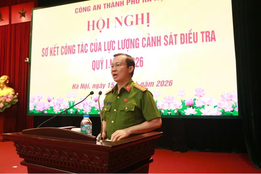 Tình hình tội phạm về trật tự xã hội trên địa bàn Thủ đô quý I/2026 được kiềm chế, kéo giảm 15% so với thời gian liền kề và giảm 24,3% so với cùng kỳ năm 2025. Đó là kết quả nổi bật của lực lượng Cảnh sát điều tra tội phạm - CATP Hà Nội được báo cáo tại Hội nghị Sơ kết công tác Quý I-2026, tổ chức sáng 15-4. Trung tướng Nguyễn Thanh Tùng - Ủy viên Ban Thường vụ Thành ủy, Bí thư Đảng ủy, Giám đốc CATP Hà Nội chỉ đạo hội nghị. Đại tá Nguyễn Đức Long - Phó Giám đốc, Thủ trưởng Cơ quan Cảnh sát điều tra CATP Hà Nội dự và chủ trì hội nghị.