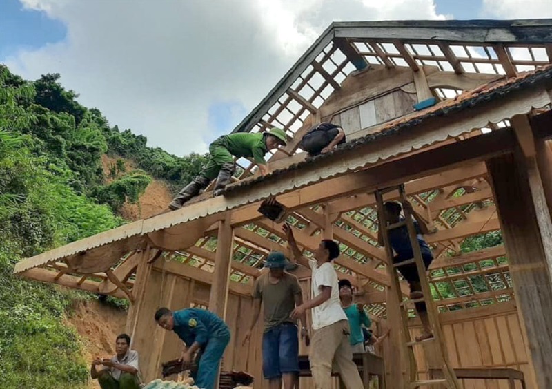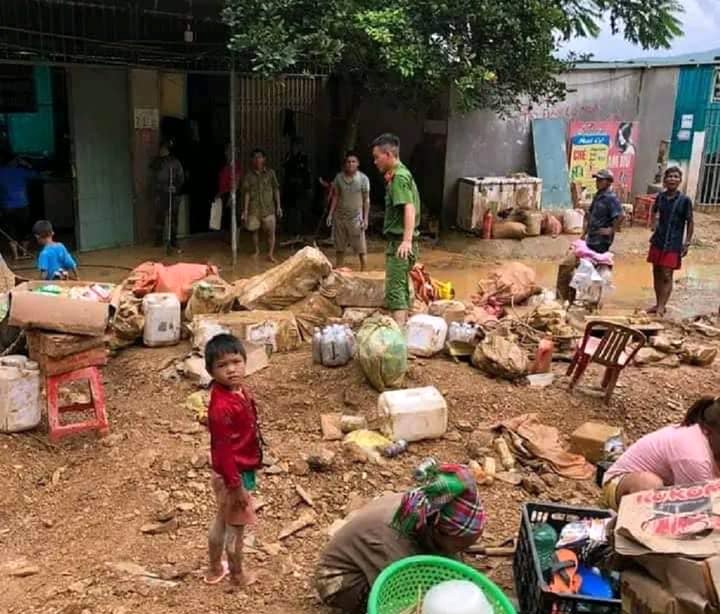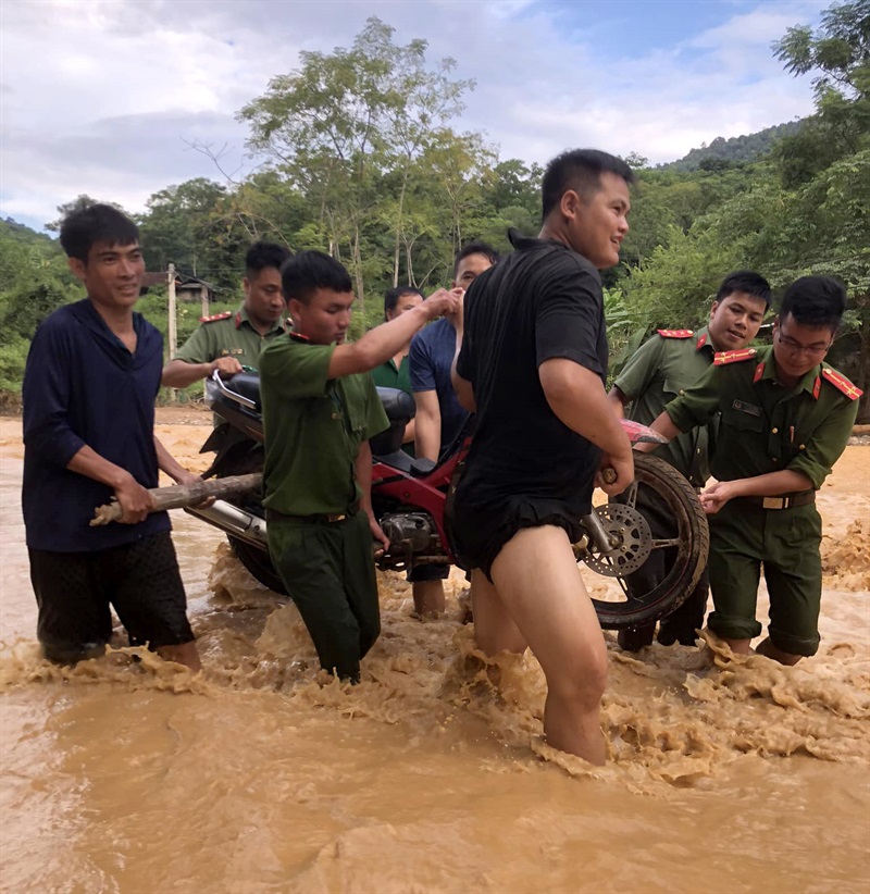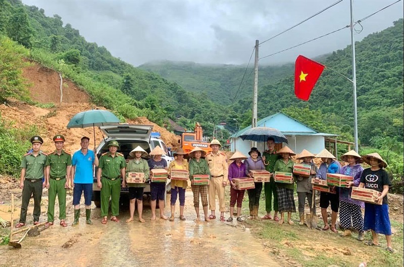 Công an huyện Kỳ Sơn, Nghệ An vượt lũ tiếp tế lương thực, giúp người dân khắc phục hậu quả mưa lũ