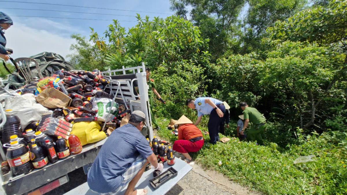 Như Chuyên đề Công an TP Đà Nẵng đã thông tin, tối 18-6, một số người dân thôn Phước Lộc (xã Tam Thái) đi qua kênh chính Phú Ninh bất ngờ khi phát hiện lượng lớn chai nước mắm, nước chấm không rõ ai vứt bỏ, chất thành đống trong bụi rậm. Tiếp nhận thông tin, Công an xã Tam Thái phối hợp với Phòng Cảnh sát kinh tế- Công an tỉnh Quảng Nam và Chi cục Quản lý thị trường tỉnh có mặt tại hiện trường lập biên bản, thu gom các sản phẩm đưa về trụ sở Công an xã Tam Thái để kiểm đếm, phục vụ công tác điều tra, xác minh.