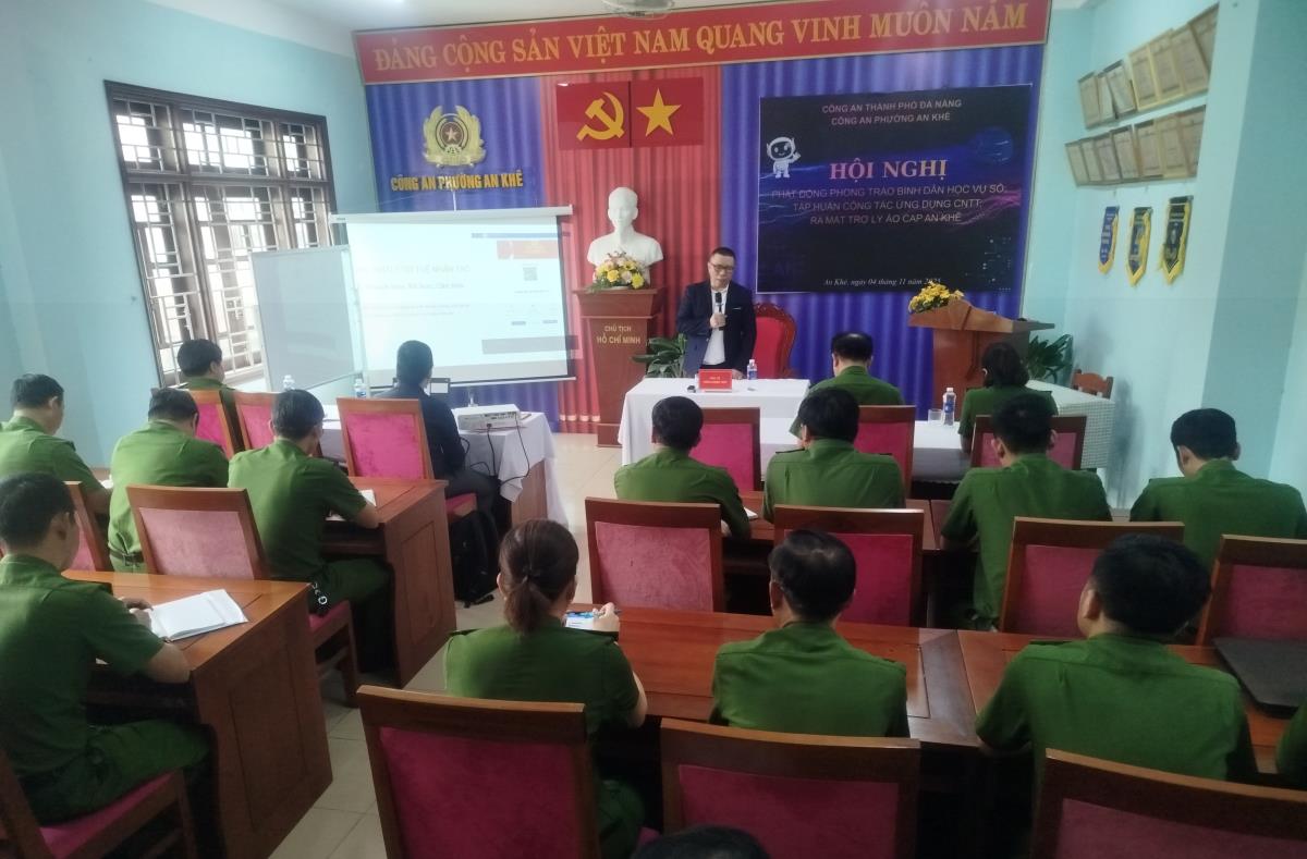 ĐÀ NẴNG- Chiều 4-11, Công an phường An Khê tổ chức phát động phong trào bình dân học vụ số và tập huấn công tác ứng dụng công nghệ thông tin; đồng thời ra mắt Trợ lý ảo Công an phường An Khê.