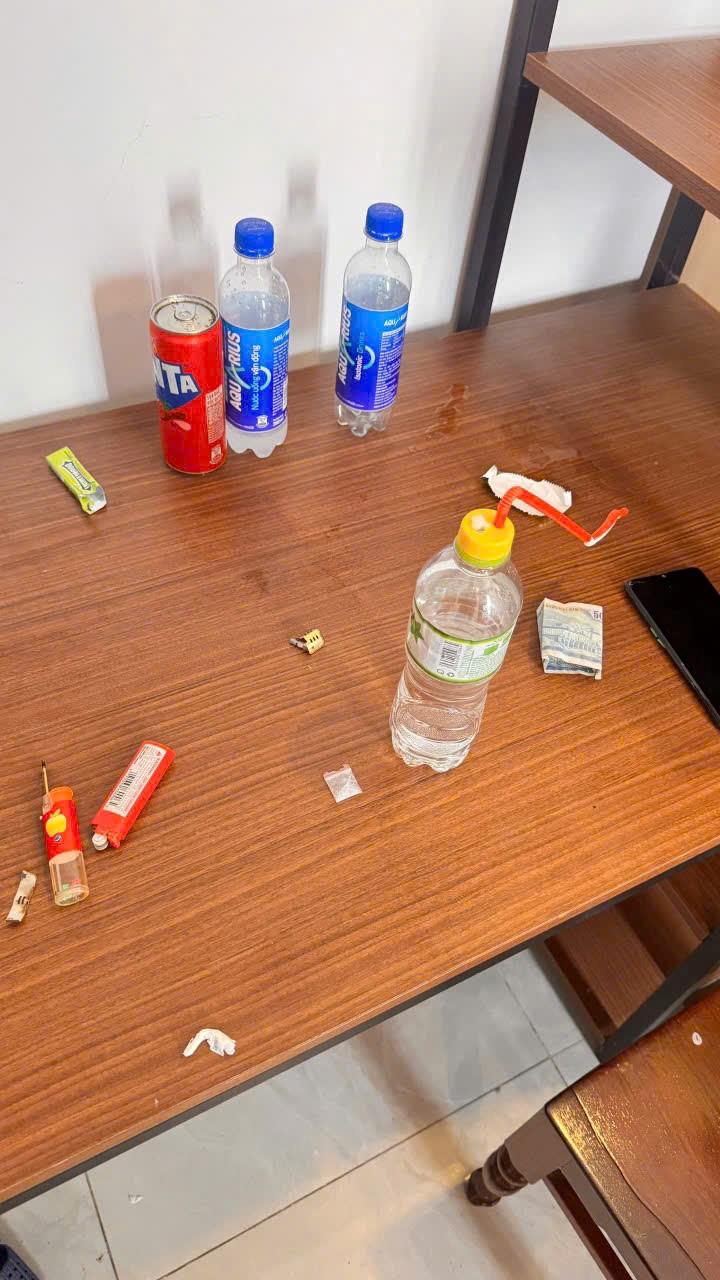 Qua kiểm tra, lực lượng Công an phường đã thu giữ: 1 chai nước có nắp chai màu vàng đục 2 lỗ gắn một ống hút nhựa màu đỏ - trắng và một bật lửa màu đỏ có gắn đầu khò làm từ tăm gỗ được quấn lò xo kim loại (cất giấu ở góc nhỏ phía sau cửa phòng vệ sinh); 1 gói ni lông kích thước 2,5cm x 2cm bên trong chứa tinh thể rắn màu trắng, nghi là ma tuý.
