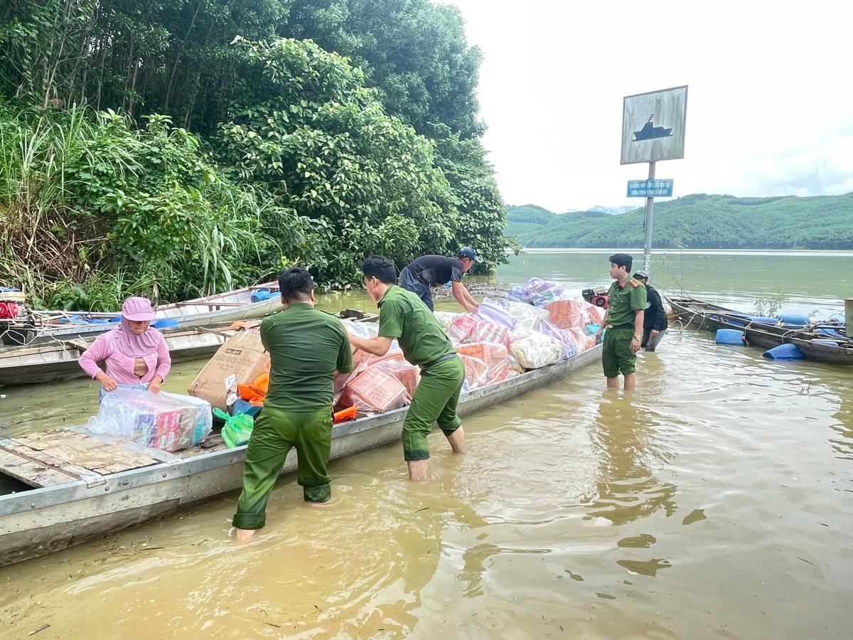 Theo đại diện Công an phường Sơn Trà, chuyến hàng gồm nhiều nhu yếu phẩm thiết yếu như gạo, mì tôm, nước uống, bánh ngọt, sữa và thuốc men – những mặt hàng cần thiết nhất giúp người dân vùng bị chia cắt ổn định sinh hoạt tạm thời.