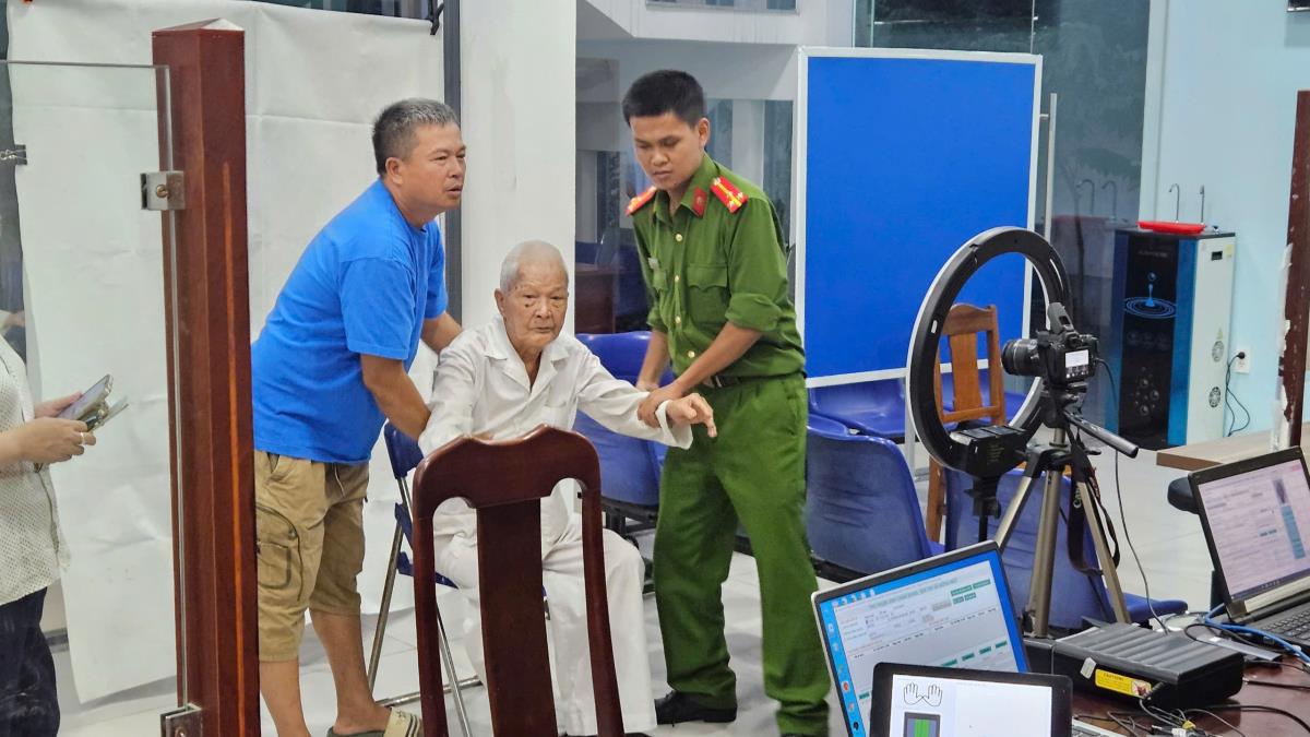 Hòa trong dòng người đên làm thủ tục cấp CCCD, nhiều người khá bất ngờ khi chứng kiến cụ ông Nguyễn Phi Nguyện (sinh năm 1923, trú trên đường Huỳnh Ngọc Huệ, TP Đà Nẵng) được người nhà đưa đến làm CCCD. CBCS làm nhiệm vụ bên ngoài đã tiếp sức cùng người thân dìu cụ vào làm thủ tục một cách nhanh chóng, không để cụ phải đợi lâu. Bà con đến trước cũng ưu ái, sẵn sòng chia sẻ, nhường cụ Nguyện một cách thật lòng, vui vẻ.