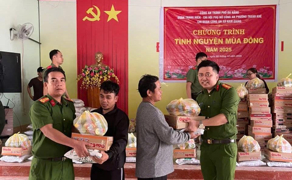 Ngày 6-12, Đoàn Cơ sở Công an phường Thanh Khê phối hợp với Chi đoàn Công an xã Nam Giang (TP Đà Nẵng) tổ chức Chương trình trao quà hỗ trợ cho bà con khó khăn bị ảnh hưởng bởi thiên tai tại xã Nam Giang, trong khuôn khổ Chiến dịch Tình nguyện mùa đông năm 2025.