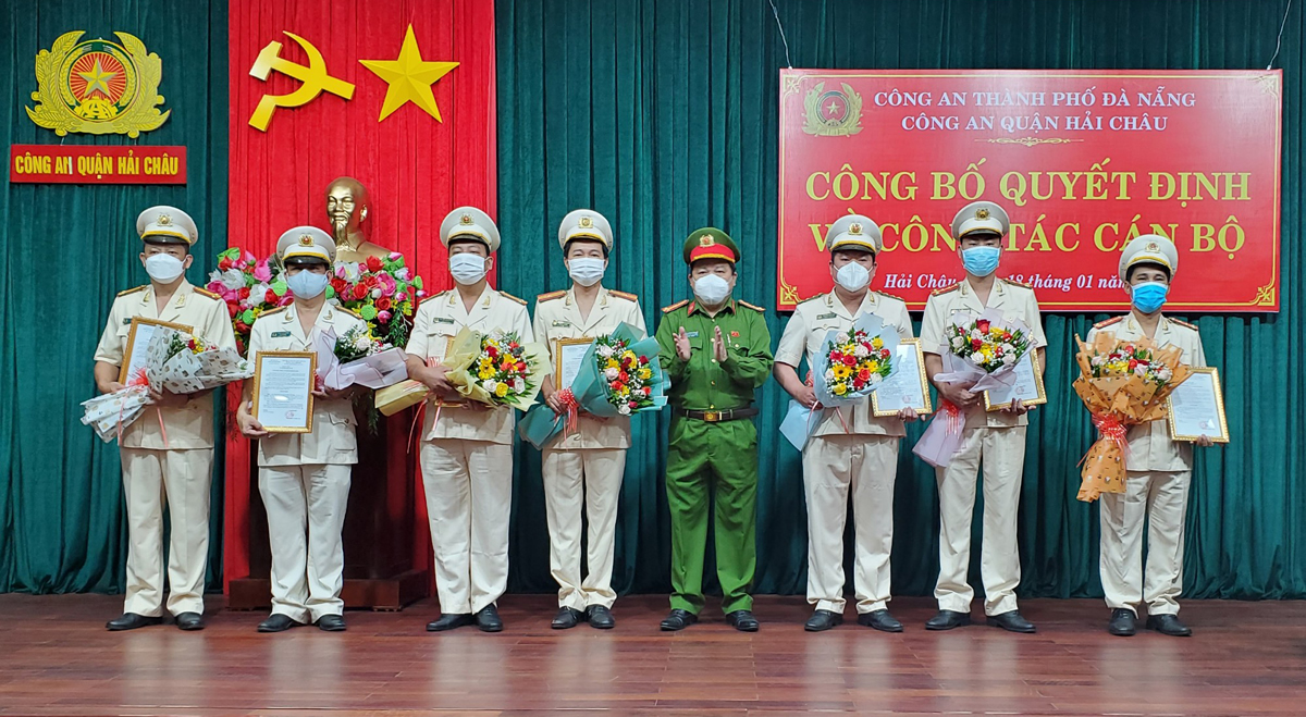 Theo các quyết định, Giám đốc Công an TP điều động Trung tá Nguyễn Đăng Minh - Đội trưởng Đội Kỹ thuật hình sự, CAQ Hải Châu đến nhận công tác và giữ chức vụ Đội trưởng Đội Thanh tra giải quyết khiếu nại- tố cáo, Phòng Thanh tra; Trung tá Trần Việt Hùng- Đội trưởng Đội Thanh tra giải quyết khiếu nại- tố cáo, Phòng Thanh tra đến nhận công tác và giữ chức vụ Đội trưởng Đội Kỹ thuật hình sự, CAQ Hải Châu; Thiếu tá Huỳnh Trần Bảo Hoàng- Phó đội trưởng Đội Tổng hợp, CAQ Hải Châu đến nhận công tác và giữ chức vụ Phó đội trưởng Đội An ninh, CAQ Hải Châu; Trung tá Lê Văn Hùng- Phó đội trưởng Đội An ninh, CAQ Hải Châu đến nhận công tác và giữ chức vụ Phó đội trưởng Đội Tổng hợp, CAQ Hải Châu. Giám đốc Công an TP cũng có quyết định bổ nhiệm Đại úy Võ Văn Hưng, cán bộ Đội Cảnh sát kinh tế đến nhận và giữ chức vụ Phó đội trưởng Đội Cảnh sát hình sự, CAQ Hải Châu; Đại úy Nguyễn Sơn Tiến, cán bộ Đội Chính trị - Hậu cần giữ chức vụ Phó đội trưởng Đội Chính trị - Hậu cần, CAQ Hải Châu; Đại úy Hồ Văn Phê, cán bộ CAP Phước Ninh giữ chức vụ Phó trưởng CAP Phước Ninh.