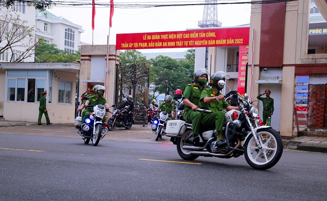 Kết thúc buổi lễ, Thiếu tướng Nguyễn Đức Dũng- Giám đốc Công an tỉnh chính thức phát lệnh cho toàn lực lượng ra quân thực hiện đợt cao điểm. Đợt tổng ra quân trấn áp tội phạm bắt đầu từ ngày 15-12-2021 đến hết 14-2-2022. Ngay sau buổi lễ, lực lượng Công an tỉnh đã tổ chức diễu hành ra quân ở các tuyến đường trên địa bàn TP Tam Kỳ.