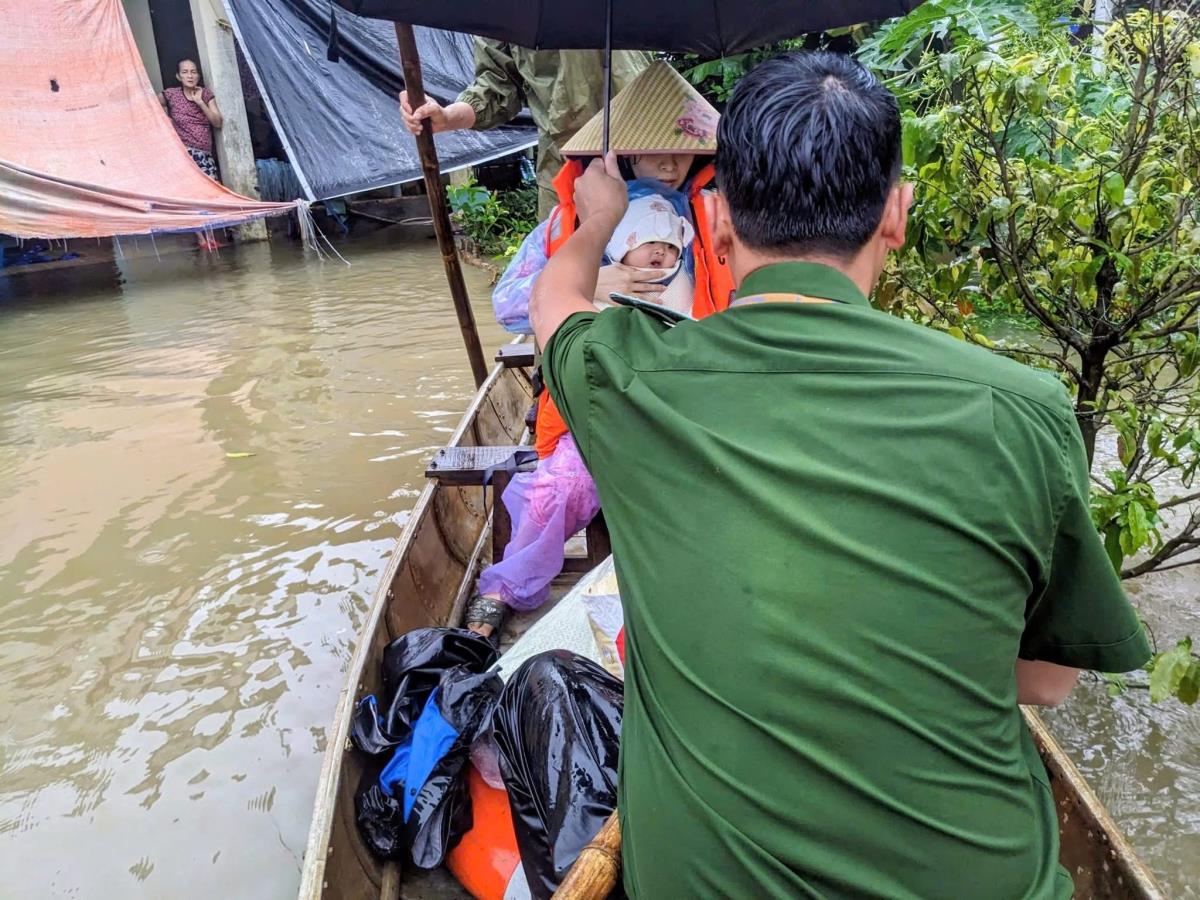 Công an Quảng Ngãi kịp thời đưa cháu bé sốt cao đi cấp cứu, giúp sản phụ mới sinh con ra khỏi vùng ngập lũ