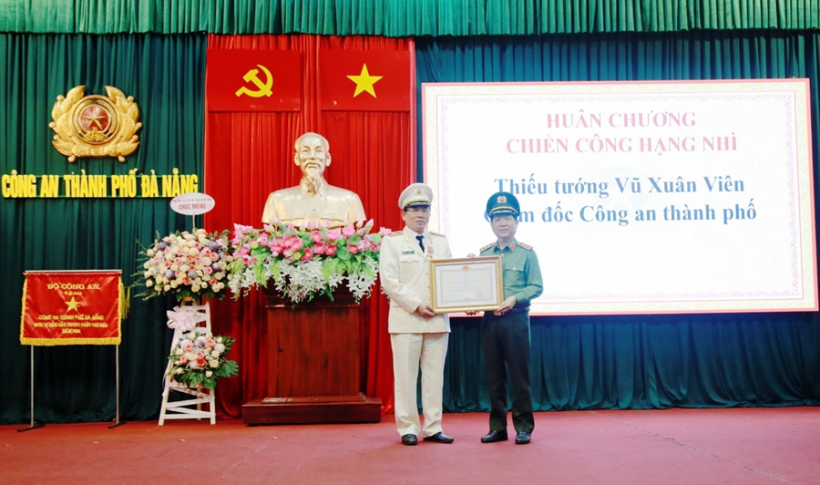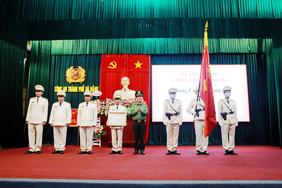 Thượng tướng Nguyễn Văn Sơn thừa uỷ quyền của Chủ tịch nước trao Huân chương Bảo vệ Tổ quốc Hạng Ba cho tập thể CAQ Hải Châu; Huân chương Chiến công Hạng Ba cho tập thể phòng Cảnh sát Hình sự.