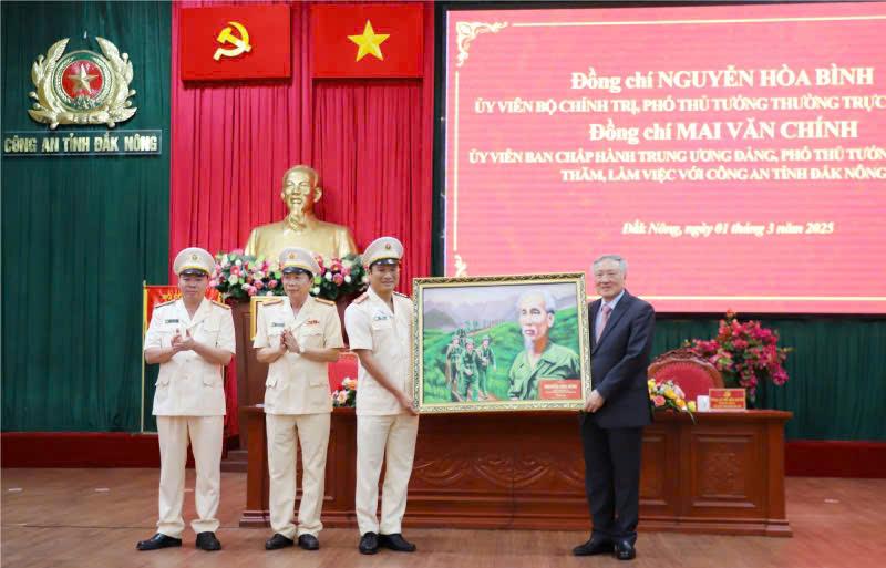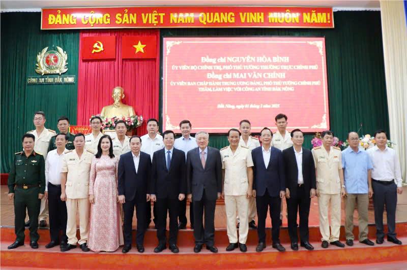 Chiều 1/3, Đoàn công tác của Chính phủ do đồng chí Nguyễn Hòa Bình, Ủy viên Bộ Chính trị, Phó Thủ tướng Thường trực Chính phủ và đồng chí Mai Văn Chính, Ủy viên Trung ương Đảng, Phó Thủ tướng Chính phủ đã đến thăm, làm việc với Công an tỉnh Đắk Nông. Tham dự có đồng chí: Ngô Thanh Danh, Bí thư Tỉnh ủy, Trưởng đoàn đại biểu Quốc hội tỉnh; Hồ Văn Mười, Phó Bí thư Tỉnh ủy, Chủ tịch UBND tỉnh; Hồ Xuân Trường, Phó Bí thư Tỉnh ủy; Các đồng chí trong Ban Thường vụ Tỉnh ủy, lãnh đạo HĐND, UBND tỉnh; các đồng chí trong Ban Giám đốc Công an tỉnh; lãnh đạo, chỉ huy các đơn vị thuộc Công an tỉnh...