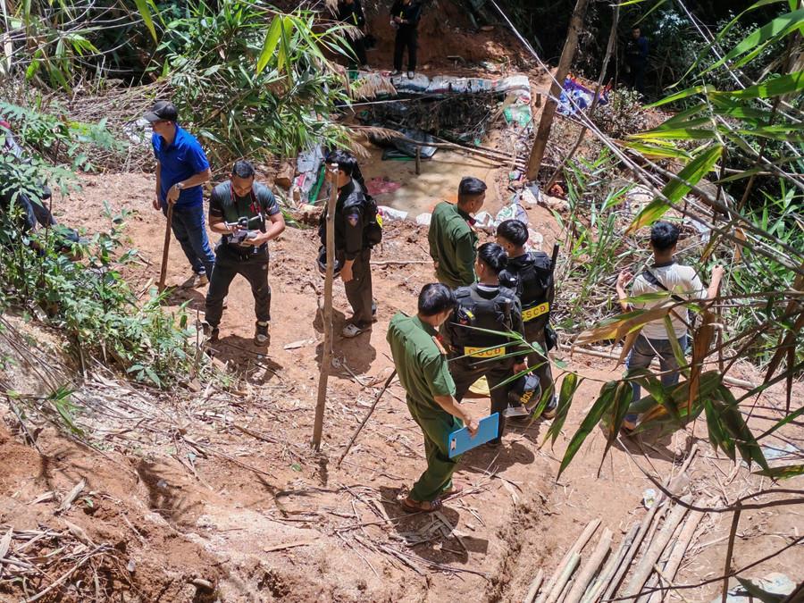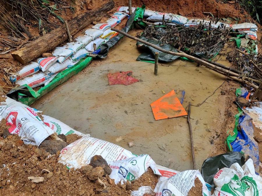 Trong khu vực này có một căn lều được dựng tạm với nhiều dụng cụ cá nhân cho thấy dấu hiệu có người đã sử dụng và đã rời đi cách thời điểm lực lượng chức năng vào kiểm tra không lâu. Còn trong những căn hầm, lực lượng Công an thu giữ nhiều máy phát điện, cuốc xẻng, xe rùa… và một số dụng cụ nghi dùng để khai thác vàng. Ngoài ra, ở trước cửa hầm còn phát hiện 2 khu vực chứa bùn, nước đục nghi là nơi tập kết để đãi vàng.