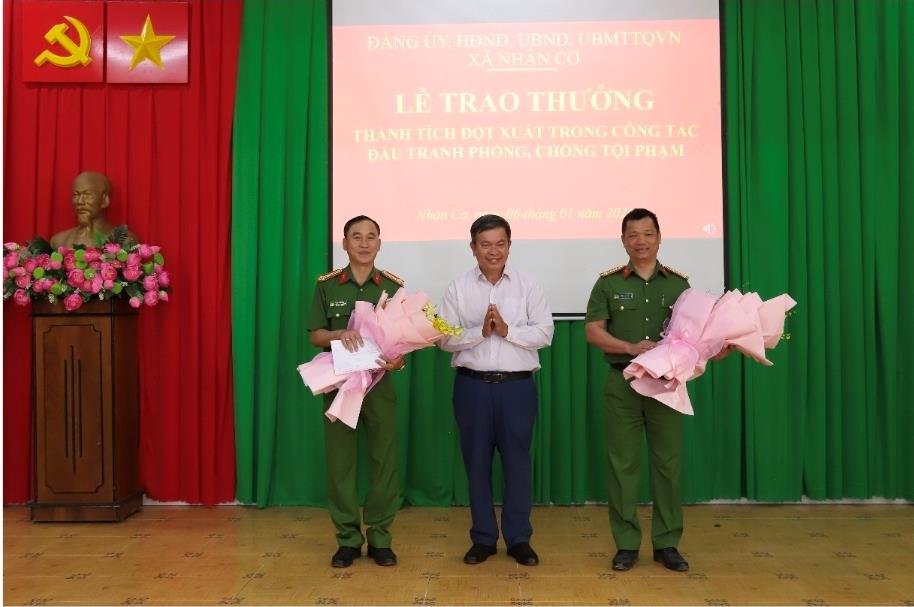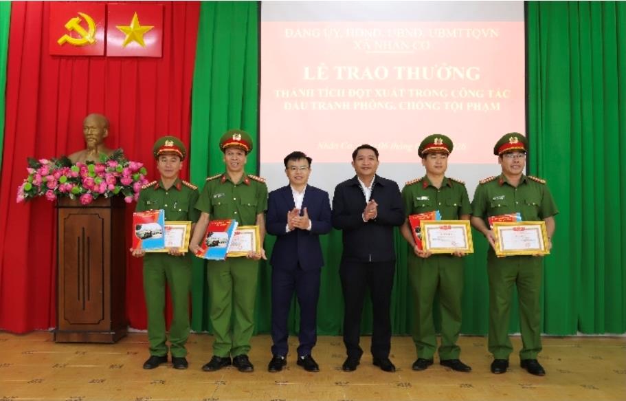 Nhân dịp này, Chủ tịch UBND xã Nhân Cơ cũng đã trao giấy khen cho 4 tập thể và 24 cá nhân đã có thành tích trong tấn công trấn áp tội phạm, bảo đảm ANTT tại địa phương.