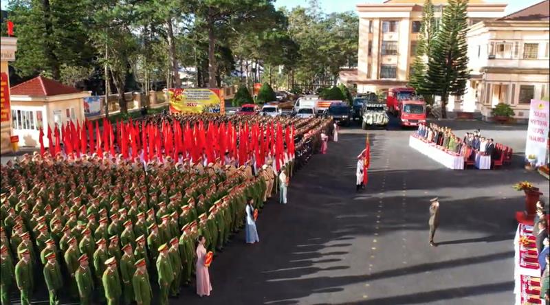 Toàn cảnh Lễ ra quân thực hiện cao điểm tấn công, trấn áp tội phạm, đảm bảo ANTT tại trụ sở Công an tỉnh Lâm Đồng