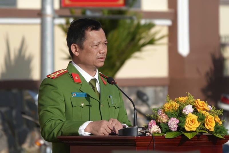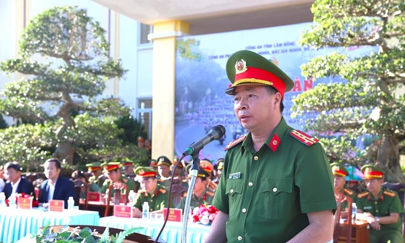 Đồng chí Đại tá Đậu Xuân Bảo - Phó Giám đốc Công an tỉnh phát lệnh ra quân tại địa bàn xã Bảo Lâm 1