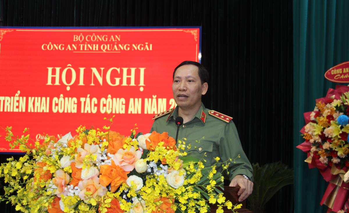 Phát biểu khai mạc Hội nghị, Thiếu tướng Hồ Song Ân – Giám đốc Công an tỉnh Quảng Ngãi cho biết, năm 2025, bám sát chỉ đạo của Đảng ủy Công an Trung ương, lãnh đạo Bộ Công an, Ban Thường vụ Tỉnh ủy, lãnh đạo UBND tỉnh, Ban Thường vụ Đảng ủy Công an tỉnh đoàn kết, đồng lòng, quyết liệt, chủ động triển khai thực hiện hiệu quả các mặt công tác Công an; sáng tạo, vượt qua mọi khó khăn, thử thách, thực hiện thắng lợi nhiệm vụ đảm bảo an ninh trật tự (ANTT), phục vụ đắc lực cho sự nghiệp phát triển kinh tế - xã hội địa phương.