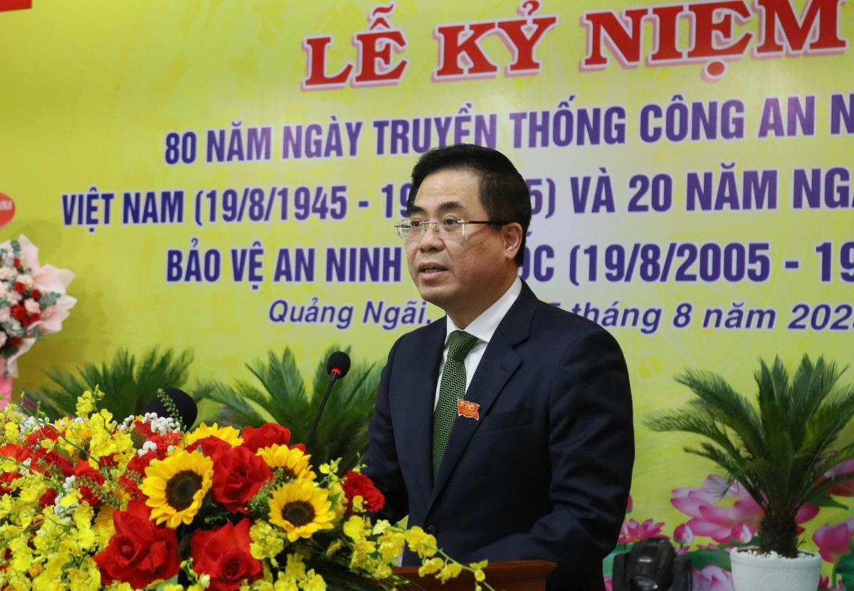 Phát biểu tại Lễ kỷ niệm, Chủ tịch UBND tỉnh Quảng Ngãi Nguyễn Hoàng Giang nhận định, bối tình hình thế giới, khu vực, trong nước hiện nay có nhiều diễn biến phức tạp, khó lường; các loại tội phạm công nghệ cao, ma túy, môi trường, “tín dụng đen”, an ninh mạng… hoạt động ngày càng tinh vi, xảo quyệt.
