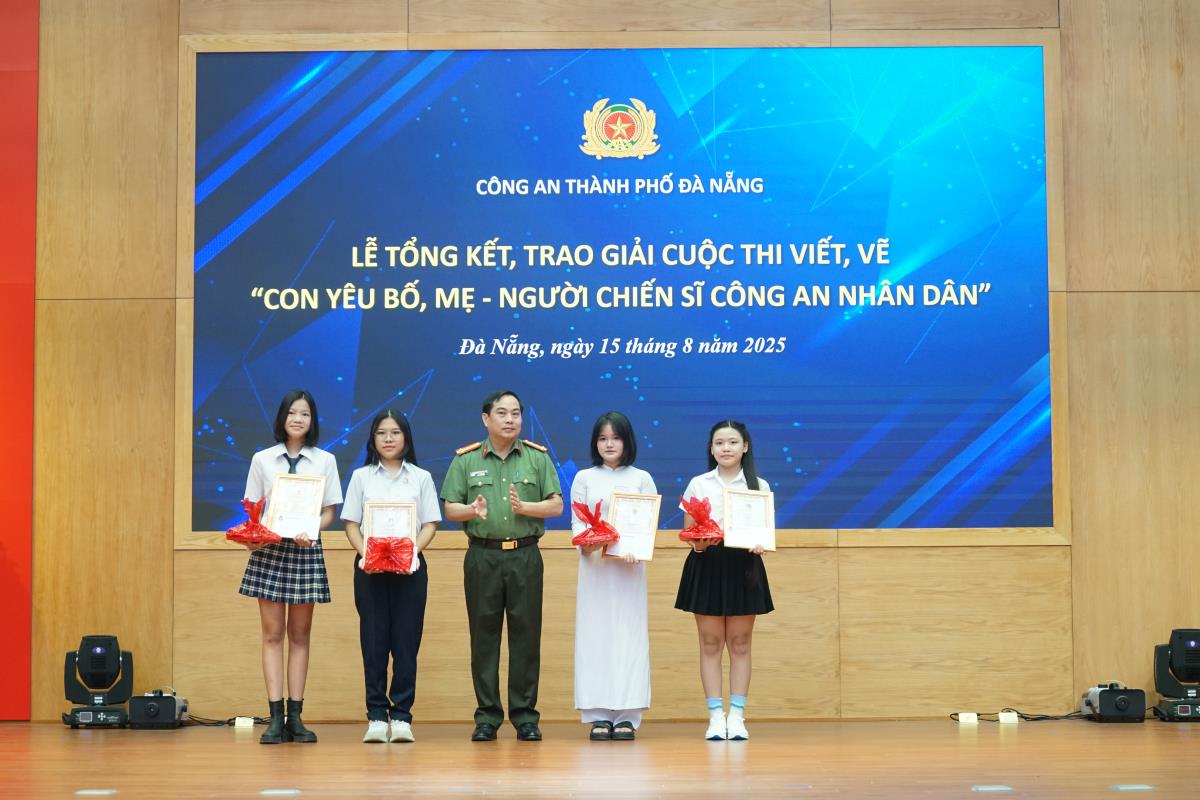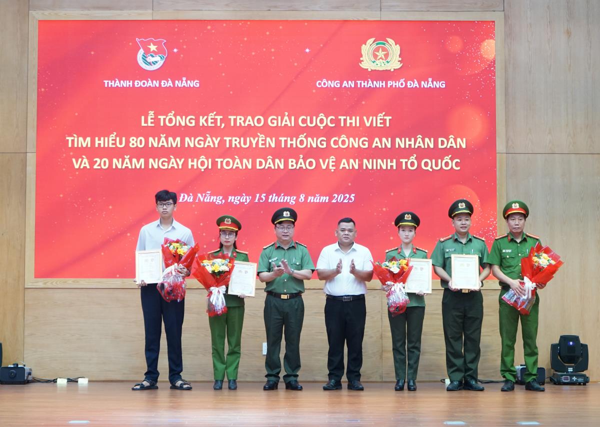 Sáng 15-8, trong không khí thi đua sôi nổi chào mừng kỷ niệm 80 năm Ngày truyền thống CAND Việt Nam (19-8-1945 - 19-8-2025) và 20 năm Ngày hội Toàn dân bảo vệ an ninh Tổ quốc (19-8-2005 - 19-8-2025), Công an TP Đà Nẵng tổ chức Lễ tổng kết, trao giải Cuộc thi viết “Tìm hiểu 80 năm Ngày truyền thống CAND và 20 năm Ngày hội Toàn dân bảo vệ an ninh Tổ quốc” cùng Cuộc thi viết, vẽ “Con yêu bố mẹ – Người chiến sĩ CAND”; đồng thời khánh thành công trình thanh niên “Số hóa Nhà truyền thống Công an thành phố”.