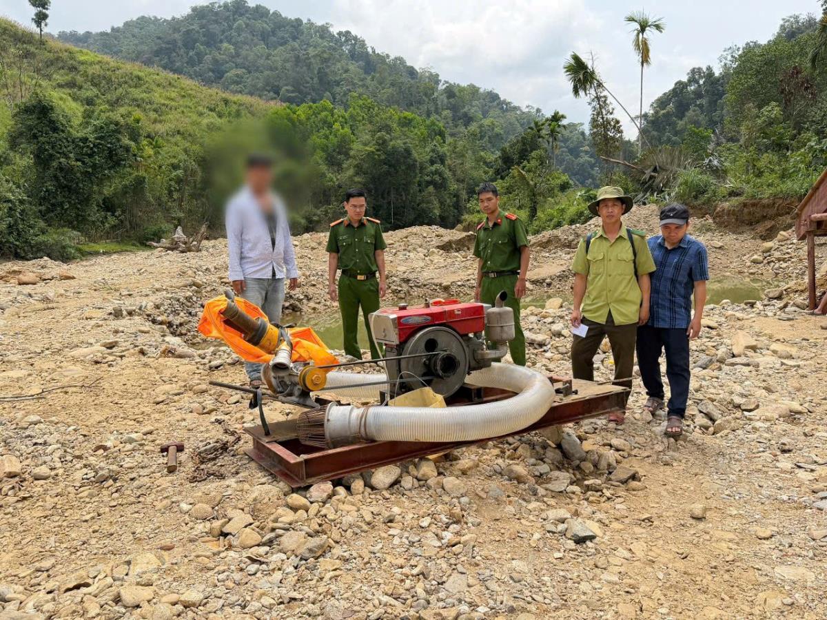 Tại hiện trường, lực lượng chức năng ghi nhận hệ thống khai thác được tổ chức tương đối bài bản, gồm máy đào, xe ô-tô tải, máy bơm nước, dàn sàng tuyển quặng cùng nhiều dụng cụ phục vụ khai thác và chế biến vàng. Khu vực khai thác có diện tích khoảng 67m2, độ sâu trung bình 0,7m; cách đó khoảng 50m là lán trại phục vụ sinh hoạt và tuyển quặng.