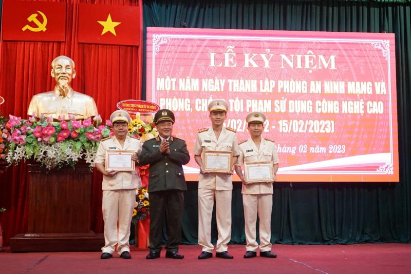 Ghi nhận thành tích, chiến công mà Phòng An ninh mạng và phòng chống tội phạm sử dụng công nghệ cao thời gian qua, nhân dịp này, Chủ tịch UBND TP đã có Quyết định tặng Bằng khen cho 2 tập thể và 2 cá nhân về thành tích trong điều tra, khám phá thành công vụ án “Cho vay lãi nặng trong giao dịch dân sự” xảy ra trên địa bàn thành phố; đồng thời trao thưởng 20 triệu đồng cho đơn vị về thành tích trong đấu tranh với tội phạm lừa đảo chiếm đoạt tài sản trên không gian mạng.