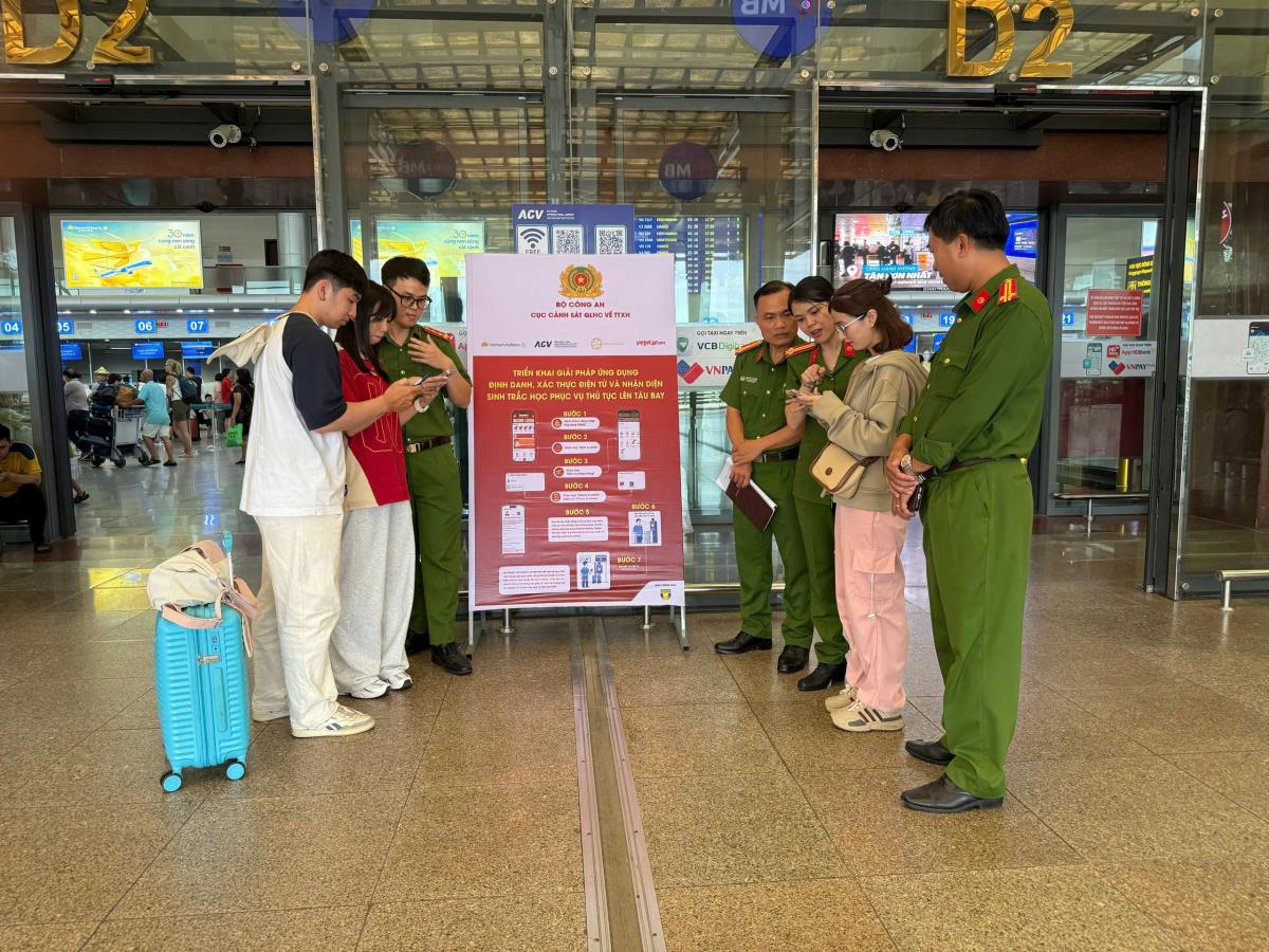 Theo đó, hành khách chỉ cần thực hiện 3 bước: 1- Check-in trên ứng dụng VNeID: Mở ứng dụng VNeID trên điện thoại; chọn Dịch vụ khác Thủ tục hàng không Check-in online và làm theo hướng dẫn; hoặc check-in và đăng ký dữ liệu khuôn mặt tại các quầy thủ tục số 05, 06 và 28. 2- Qua cổng kiểm tra an ninh: Di chuyển đến làn kiểm tra an ninh có tích hợp hệ thống sinh trắc học (tại lối đi số 3 - Nhà ga T1); đứng vào vị trí được đánh dấu, nhìn vào camera để hệ thống nhận diện khuôn mặt; khi hệ thống xác thực thành công, cửa sẽ tự động mở để hành khách tiếp tục vào khu vực soi chiếu. 3- Tại cửa ra tàu bay: Đứng vào vị trí xác định, nhìn vào camera; sau khi xác thực thành công, cửa tự động mở, hành khách lên máy bay không cần trình giấy tờ.