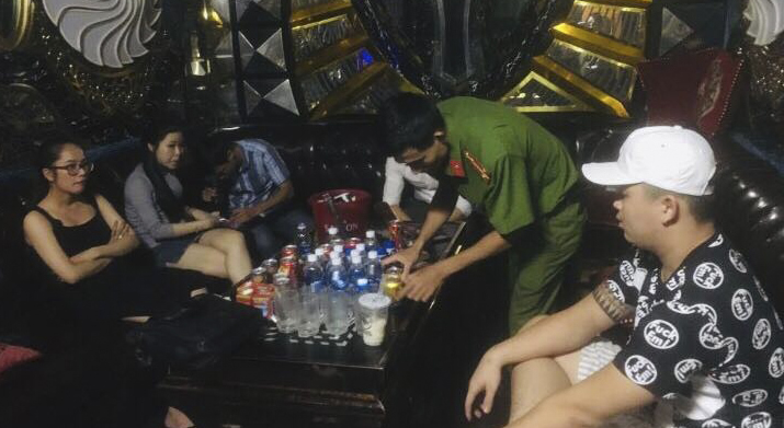 Công an TP Tam Kỳ kiểm tra hành chính tại một quán karaoke. |