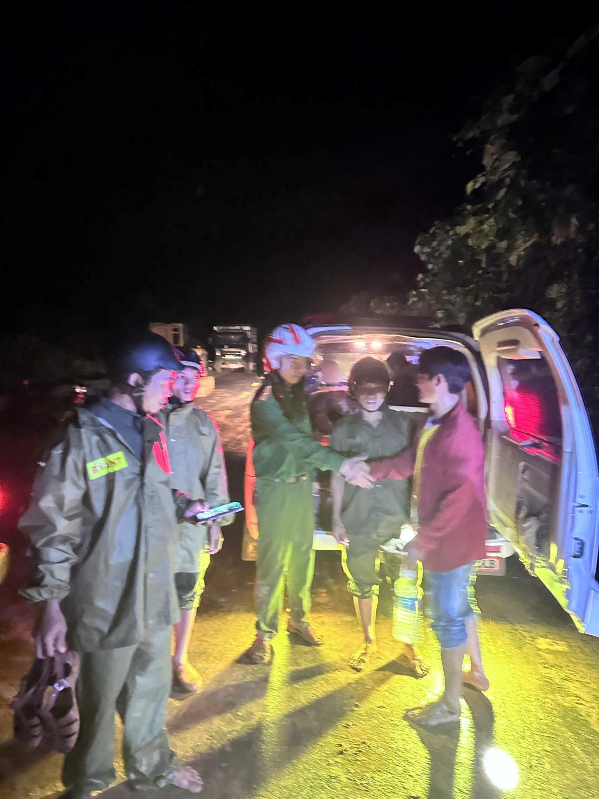 Công an xã A Vương đưa một bệnh nhân vượt mưa lũ đi cấp cứu trong đêm