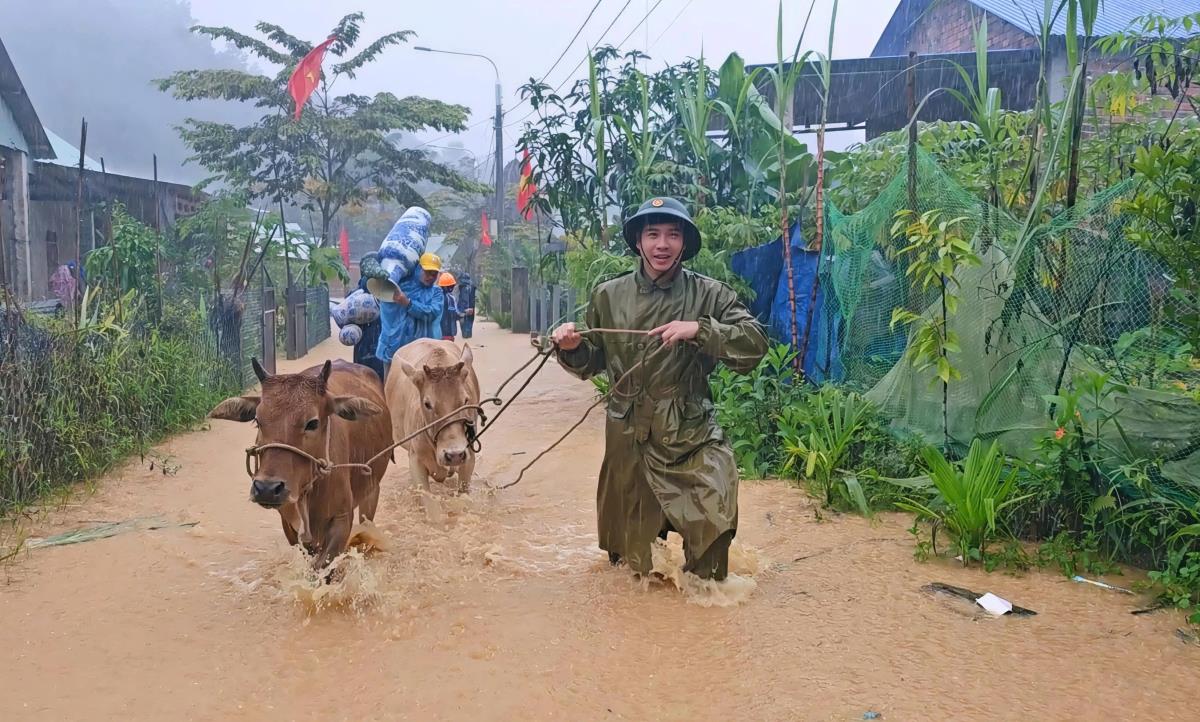 Tính đến 9 giờ sáng, hơn 50 hộ dân với trên 150 nhân khẩu đã được di dời thành công đến các điểm trú ẩn tại trụ sở UBND xã và khu vực cao ráo. Đồng thời, Công an xã cùng lực lượng ANTT cơ sở nhanh chóng giăng dây, treo biển cảnh báo tại các khu vực ngập lụt, sạt lở và đoạn đường Hồ Chí Minh bị ách tắc, đảm bảo an toàn tuyệt đối cho người và phương tiện. Hiện chưa ghi nhận thiệt hại về người và tài sản lớn, nhưng nước sông vẫn tiếp tục dâng, mưa lớn chưa giảm.