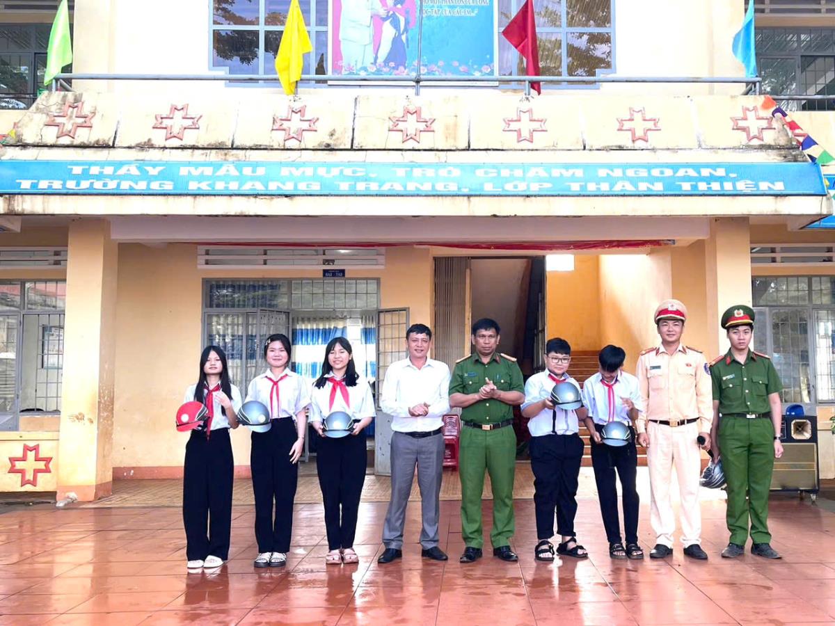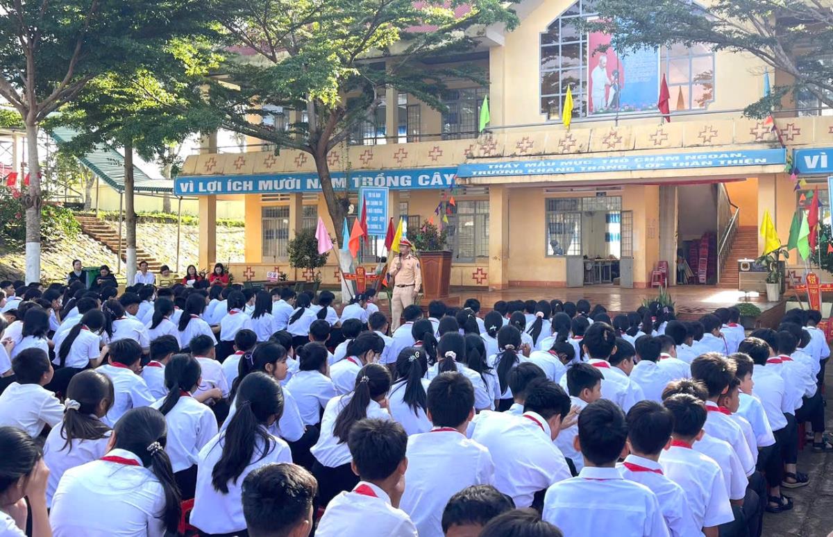 Công an xã Đắk Song phối hợp tuyên truyền Luật TTATGT cho gần 800 học sinh, giáo viên Trường THCS Nguyễn Trãi