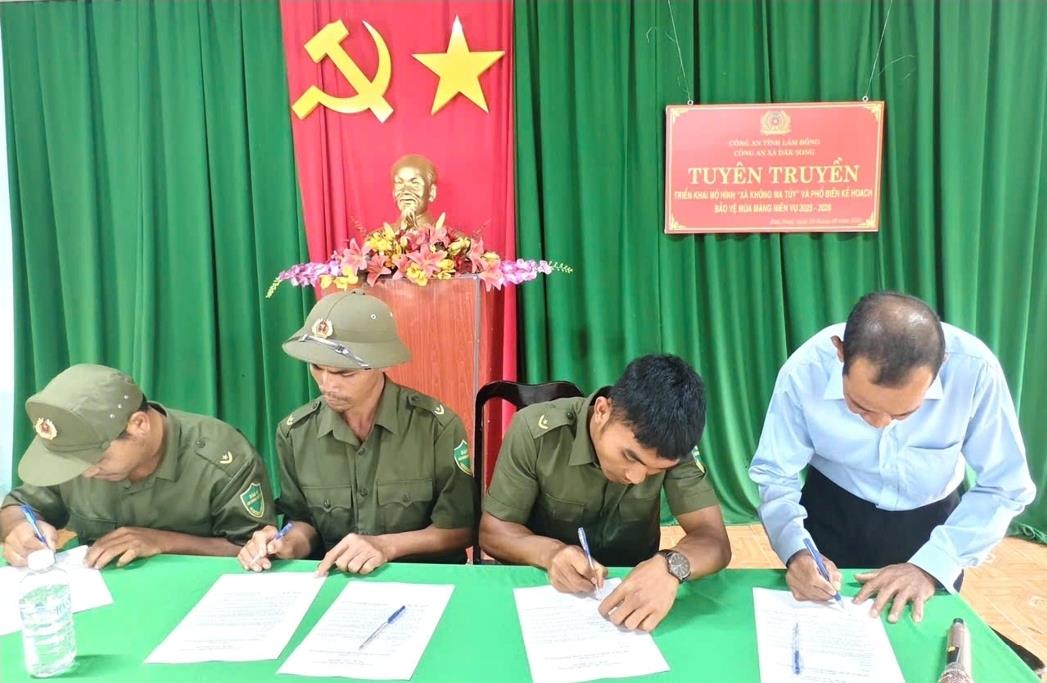 Công an xã Đắk Song tổ chức tuyên truyền, ký cam kết xây dựng xã "không ma tuý"