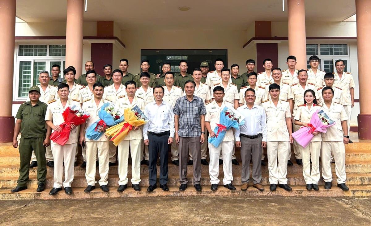 Tại buổi lễ, thừa ủy quyền của Giám đốc Công an tỉnh, Thượng tá Y Bhim Kễn, Trưởng Công an xã Đắk Song đã trao quyết định và tặng hoa chúc mừng các đồng chí phó trưởng Công an xã và cán bộ, chiến sĩ Công an xã Đắk Song.