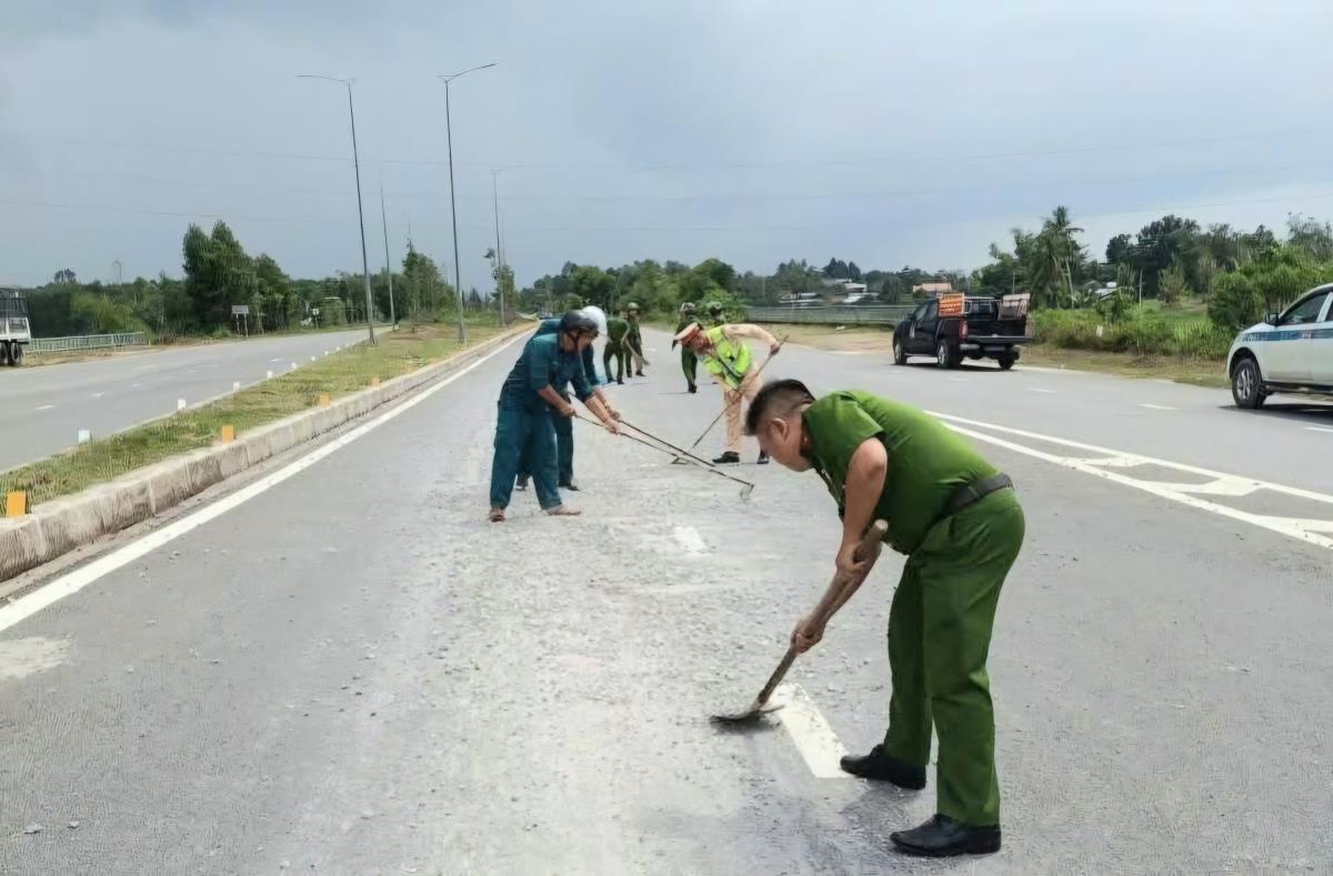 Ngay sau đó, Công an xã phối hợp cùng lực lượng dân quân thường trực và Trạm Cảnh sát giao thông Hòa Nhơn tổ chức thu gom, dọn dẹp.