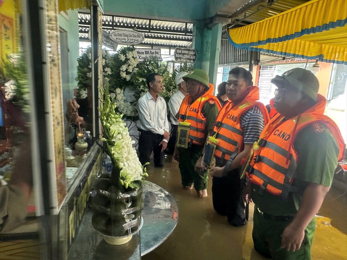Công an xã Hòa Vang hỗ trợ gia đình người dân có người thân mất đưa tang trong mưa lũ