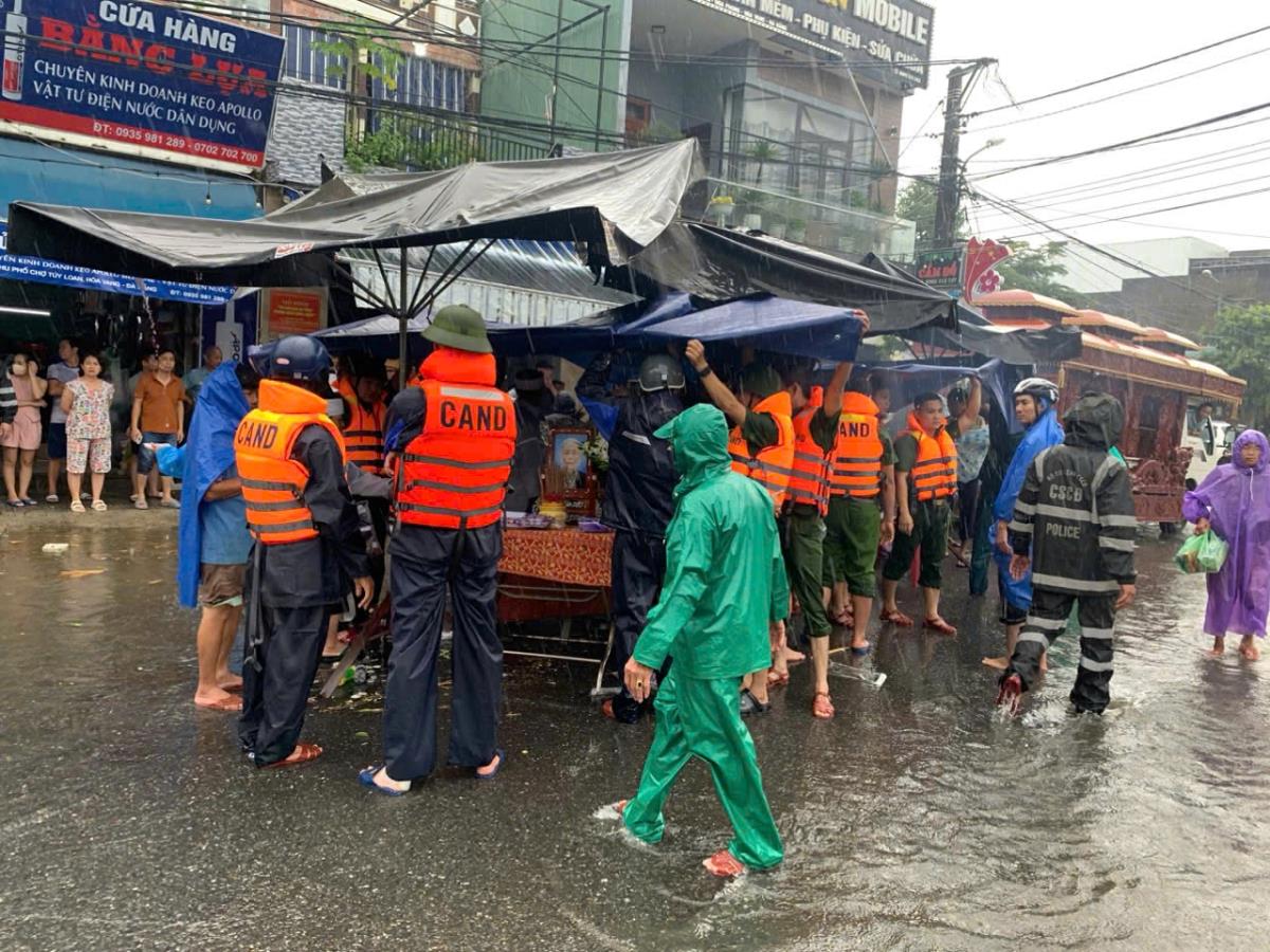 Đặc biệt, sáng ngày 28-10, nhận được thông tin cụ bà Lâm Thị Đối, sinh năm 1936, trú tại thôn Túy Loan Đông 1, xã Hòa Vang qua đời đúng vào thời điểm nước lũ dâng cao, các tuyến đường bị chia cắt, lực lượng Công an xã đã nhanh chóng huy động lực lượng, phương tiện, phối hợp cùng chính quyền địa phương hỗ trợ gia đình tổ chức đưa tang an toàn qua vùng nước ngập.