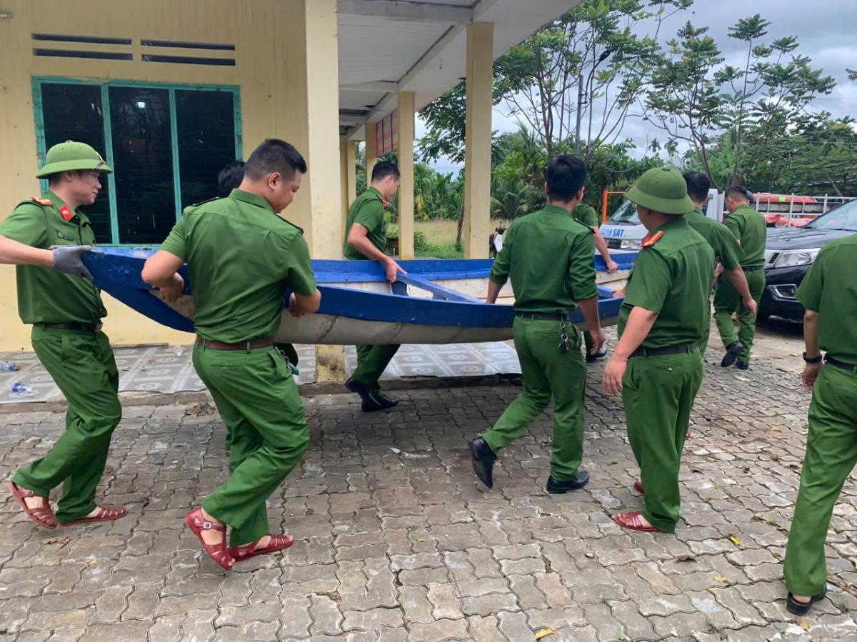 Công an xã Hòa Vang hỗ trợ nhân dân phòng chống bão số 12