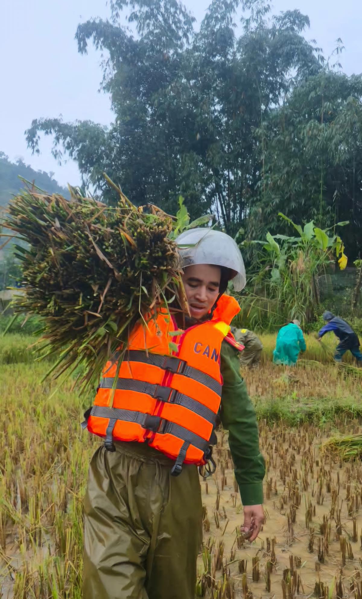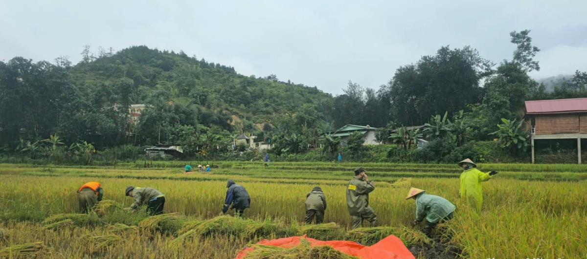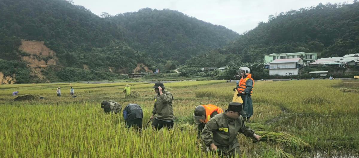 Lực lượng công an đã không quản ngại khó khăn, vận chuyển đồ đạc, lương thực, đảm bảo người già, trẻ em được sơ tán an toàn và ổn định chỗ ở tạm thời. "Chạy đua" với bão để bảo vệ nông sản, tại khu vực các thôn thuộc địa bàn xã Axan cũ, trước thông tin bão số 13 có khả năng đổ bộ, Công an xã đã khẩn trương phối hợp cùng Quân sự xã, Đồn Biên phòng Tr’hy, giáo viên trường Mầm non Axan – Tr’hy và bà con nhân dân gặt và thu hoạch lúa tại cánh đồng Chuôr, một cánh đồng lúa lớn của địa phương. Với phương châm "xanh nhà hơn già đồng", Công an xã đã cùng người dân "chạy đua" với thời gian, thu hoạch nhanh nhất có thể để giảm thiểu thiệt hại về nông nghiệp do mưa lớn và gió bão có thể gây ra. Giúp nhân dân thôn Hjuh di dời nhà cửa. Tập trung vào việc hỗ trợ người dân các thôn thuộc địa bàn xã Ch'ơm và Gari cũ. Lực lượng này đã hỗ trợ chằng chống nhà cửa kiên cố, đồng thời giúp đỡ các hộ gia đình có nhà xuống cấp, không đảm bảo an toàn di dời tài sản đến nơi trú ẩn an toàn, tránh các tai nạn đáng tiếc do sập đổ, tốc mái.