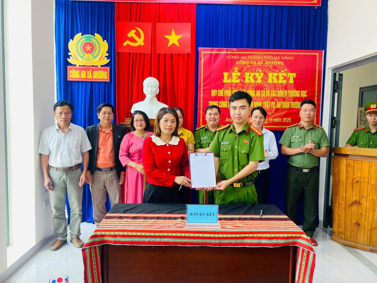 Lãnh đạo Công an xã A Vương và đại diện Ban Giám hiệu các trường học đã cùng ký kết bản Quy chế phối hợp, thống nhất nội dung, phương thức và cơ chế trao đổi thông tin, phối hợp xử lý kịp thời các vụ việc liên quan đến học sinh, đồng thời tổ chức các hoạt động tuyên truyền, giáo dục kỹ năng sống, kỹ năng phòng ngừa, tự bảo vệ đối với học sinh.