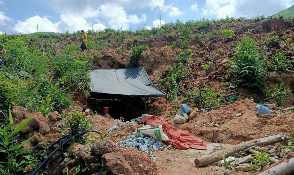 Đáng chú ý, ngày 15-9, tại khu vực hố Tràu, thôn Cẩm Tây, tổ công tác phát hiện một số đối tượng đang khai thác vàng trái phép tại hầm sâu khoảng 10m. Khi thấy lực lượng chức năng, các đối tượng bỏ chạy vào rừng. Tổ công tác đã kịp thời phá hủy 3 hầm lắng, 1 miệng hầm, 1 lán trại, nhiều đoạn ống nước và các dụng cụ phục vụ khai thác vàng trái phép.