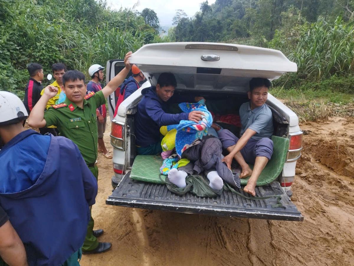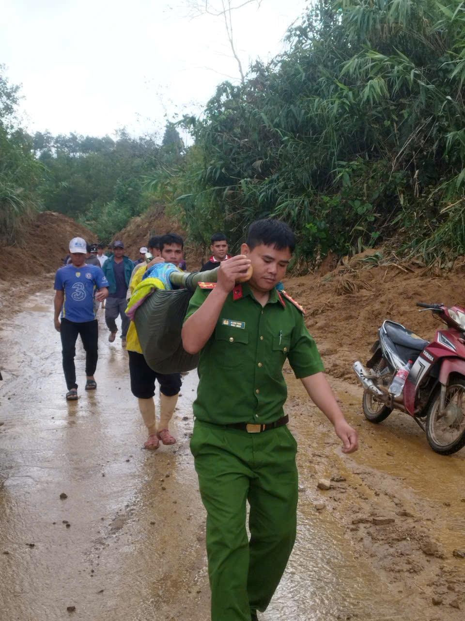 Công an xã Tây Giang kịp thời đưa người dân qua khu vực sạt lở đi cấp cứu