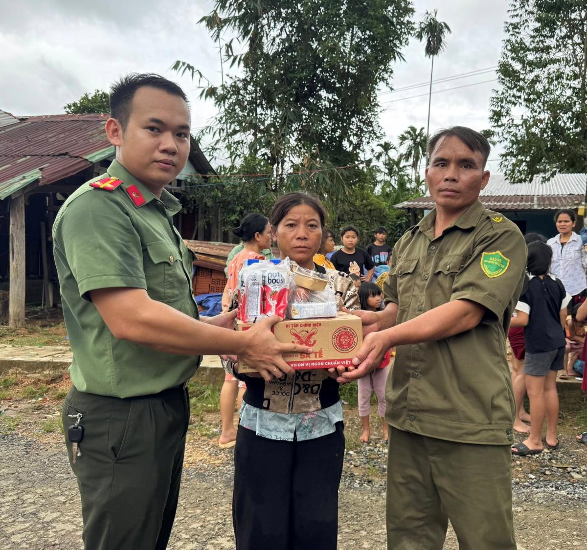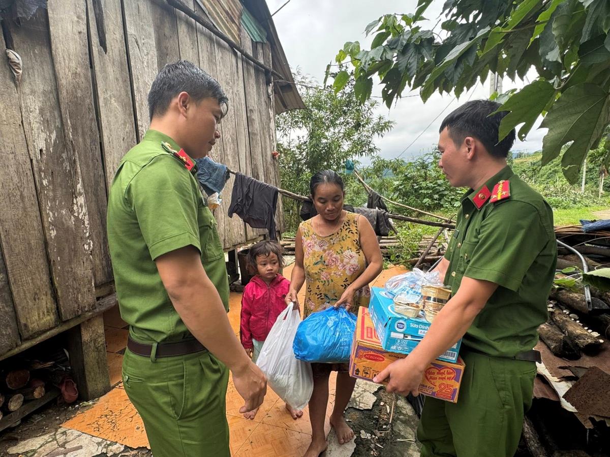 Công an xã Trà Đốc đồng hành, chia sẻ khó khăn với người dân bị thiệt hại do mưa lũ