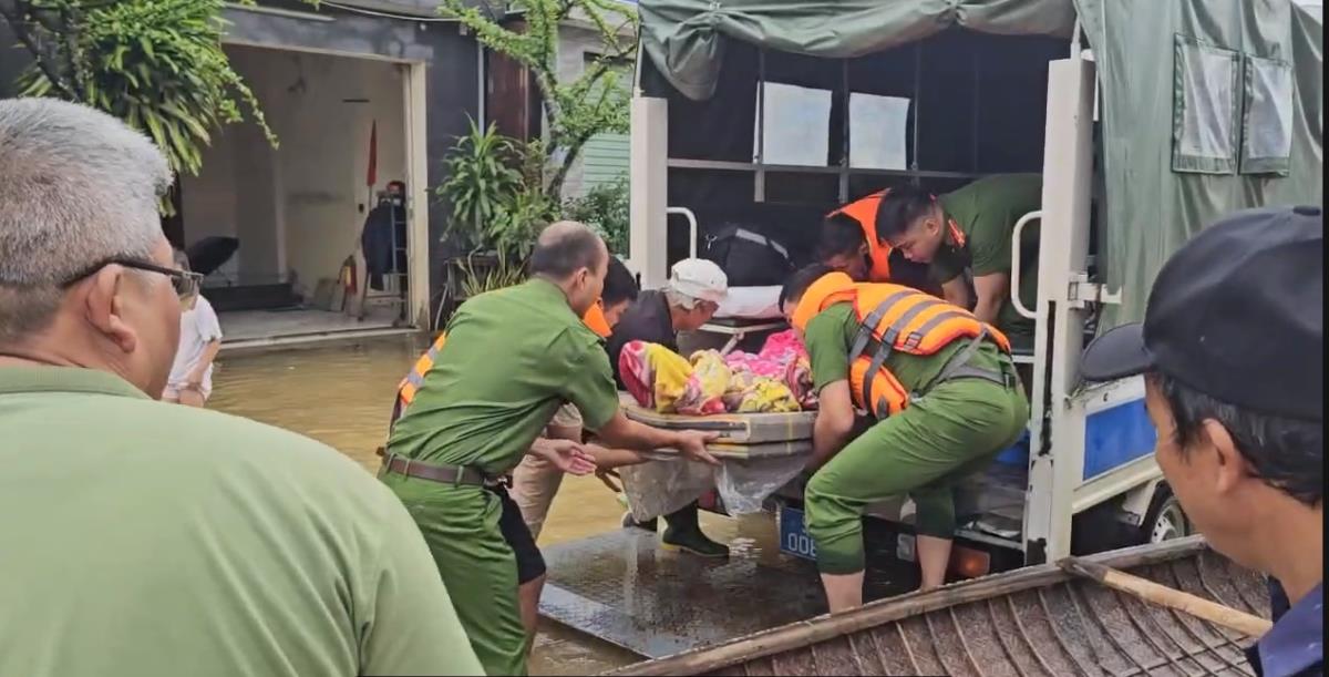 Công an xã Vu Gia huy động tổng lực kịp thời hỗ trợ 4 bệnh nhân vùng ngập sâu đi cấp cứu