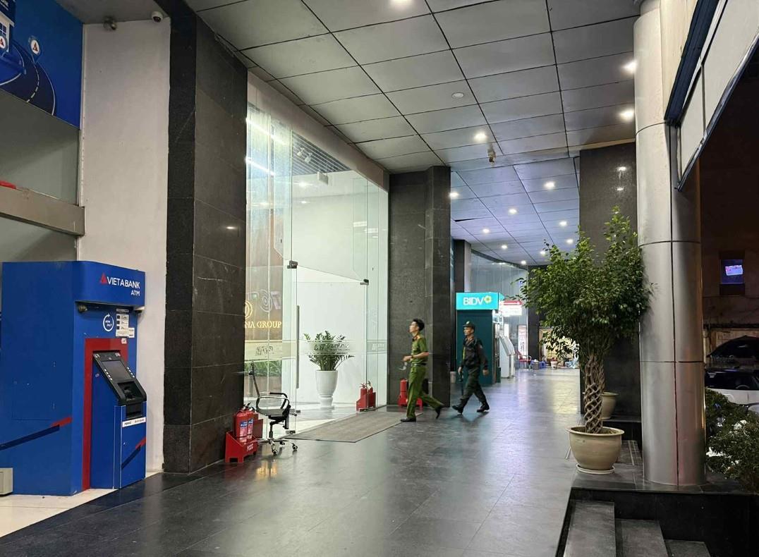 Khoảng hơn 1 giờ sau, một nhóm cán bộ công an đi ô tô biển xanh và biển trắng đến và tiếp tục đi vào thang máy tòa nhà. Trong thời gian hơn 4 tiếng, có một số người được cho là nhân viên công ty cũng xuất hiện.