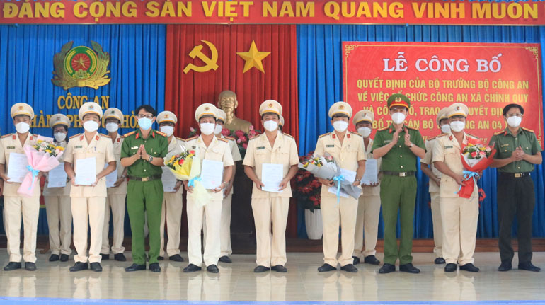 Có 13 cán bộ, chiến sĩ thuộc Công an 4 xã nói trên được bố trí chuyển từ CAX bán chuyên trách thành Trưởng, Phó trưởng CAX và CAX chính quy kể từ ngày 20-12-2021, với thời hạn 5 năm.