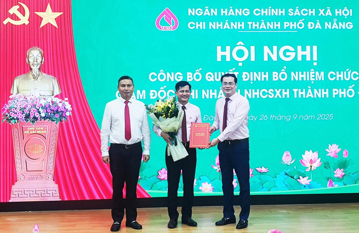 Chiều 26-9, tại TP Đà Nẵng, Ngân hàng Chính sách xã hội Việt Nam (VBSP) đã tổ chức Hội nghị công bố Quyết định số 8855/QĐ-NHCS ngày 25-9-2025 của Tổng Giám đốc VBSP về việc bổ nhiệm có thời hạn chức vụ Giám đốc Chi nhánh VBSP TP Đà Nẵng đối với ông Đoàn Ngọc Chung – quyền Giám đốc VBSP TP Đà Nẵng.