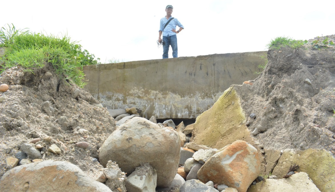 Một điểm kè bê-tông kém chất lượng, không kết nối và bị hổng cả phần móng. |