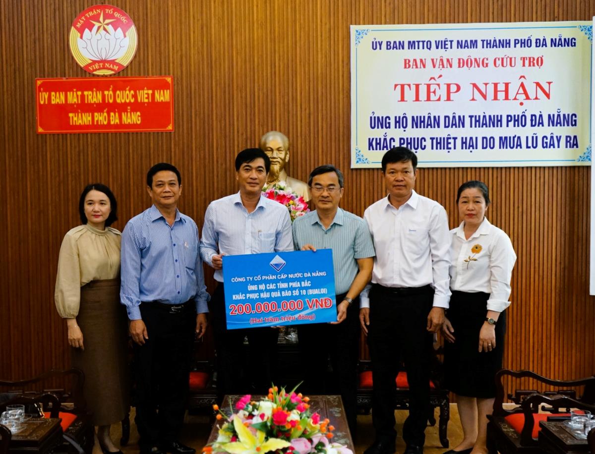 Nhằm chia sẻ với những mất mát mà đồng bào các tỉnh phía Bắc bị thiệt hại do cơn bão số 10 và nhân dân Đà Nẵng bị thiệt hại do mưa lũ gây ra, ngày 6-11, lãnh đạo Công ty Cổ phần Cấp nước Đà Nẵng đã đến Ủy ban Mặt trận Tổ quốc Việt Nam thành phố Đà Nẵng ủng hộ số tiền 200 triệu đồng cho đồng bào các tỉnh phía Bắc và 500 triệu đồng cho người dân Đà Nẵng. Cùng ngày, lãnh đạo Công ty Cổ phần Đầu tư Đà Nẵng - Miền Trung ủng hộ đồng bào thiệt hại do bão lũ tại Đà Nẵng số tiền 500 triệu đồng.
